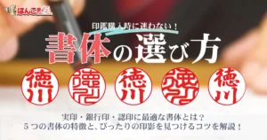 印鑑づくりで迷いやすいのが「書体(文字デザイン)」です。書体は印影の見た目だけでなく、読みやすさや、一般的に言われる真似されにくい印象(対策の観点)にも差が出ます。 ただし“絶対の正解”はありません。失敗しにくいコツは、 […]